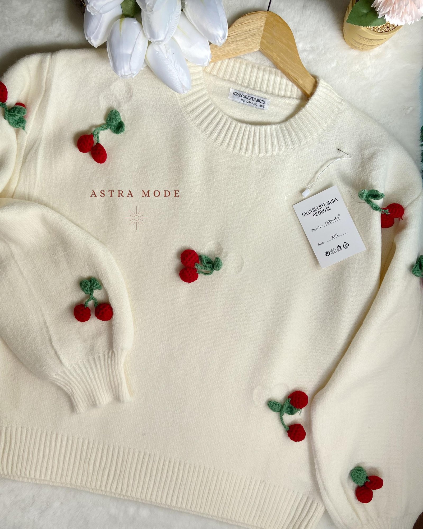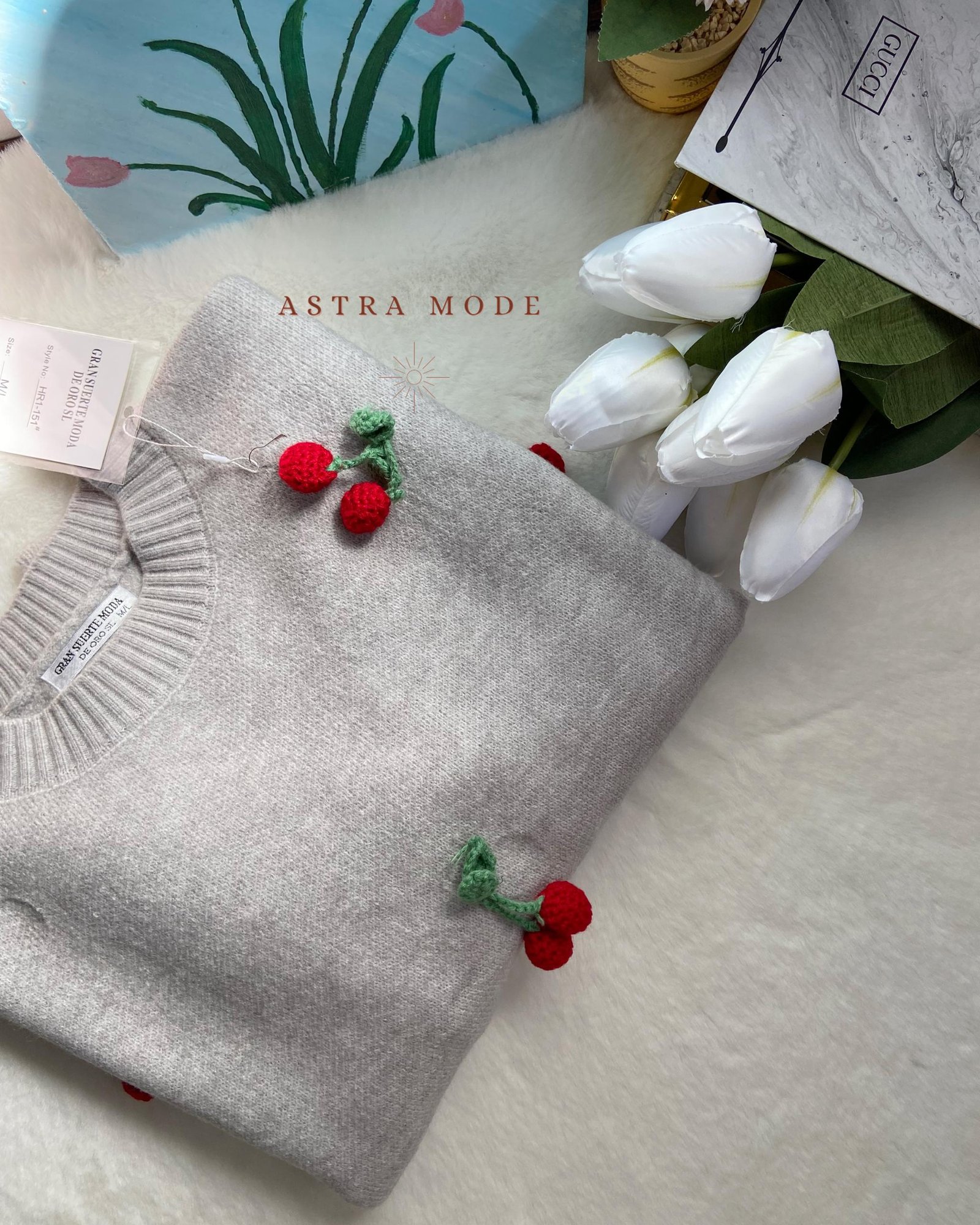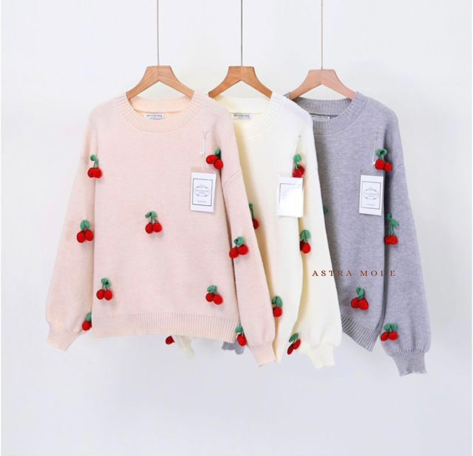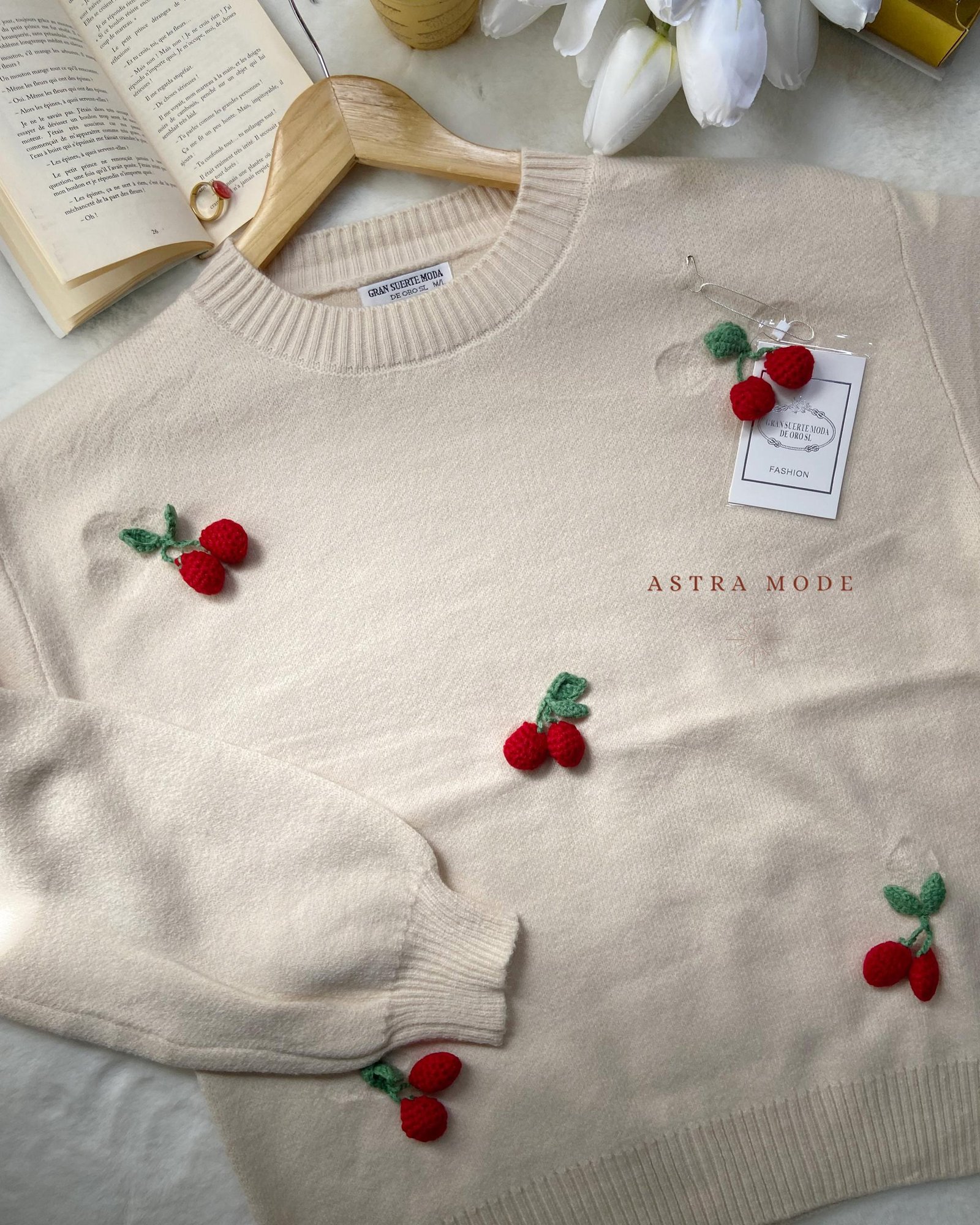 تصميم بناتي بألوان ناعمة، مزين بحبّات كرز كروشيه تضيف لمسة أنثوية رقيقة ✨ يمدلك إطلالة كورية هايلة ومريحة فـ نفس الوقت ✨