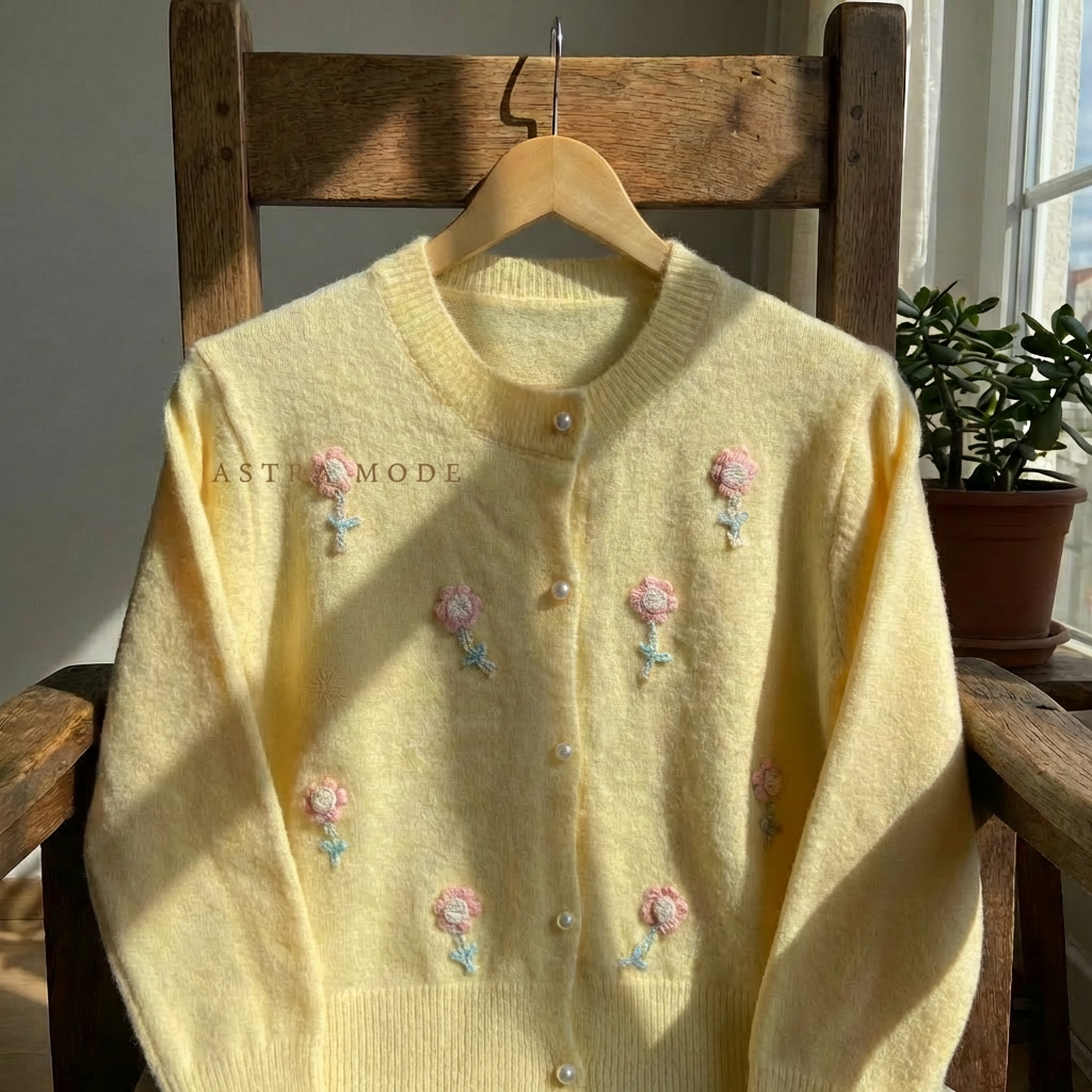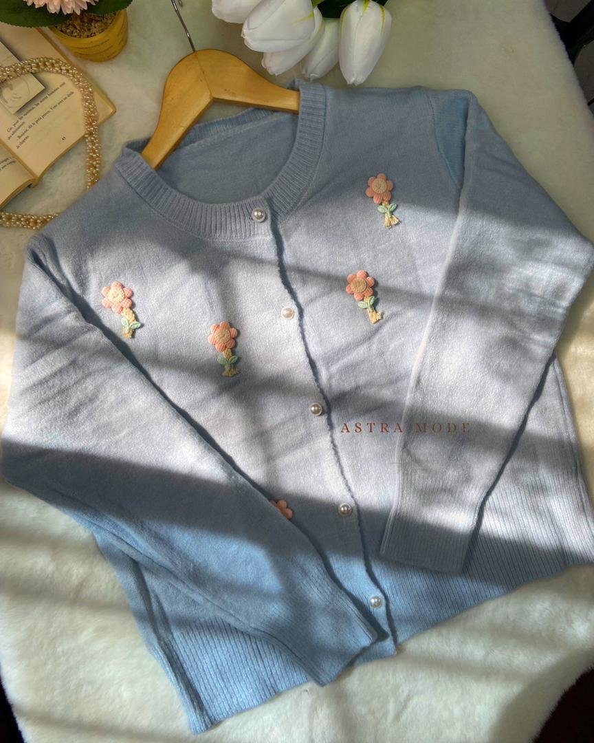 كارديغان ربيعي ناعم يلائم العيد✨🌸 تصميم أنثوي بتفاصيل ورود صغيرة يمنحك إطلالة هادئة، راقية . خفيف، مريح، وسهل التنسيق مع كل إطلالاتك.